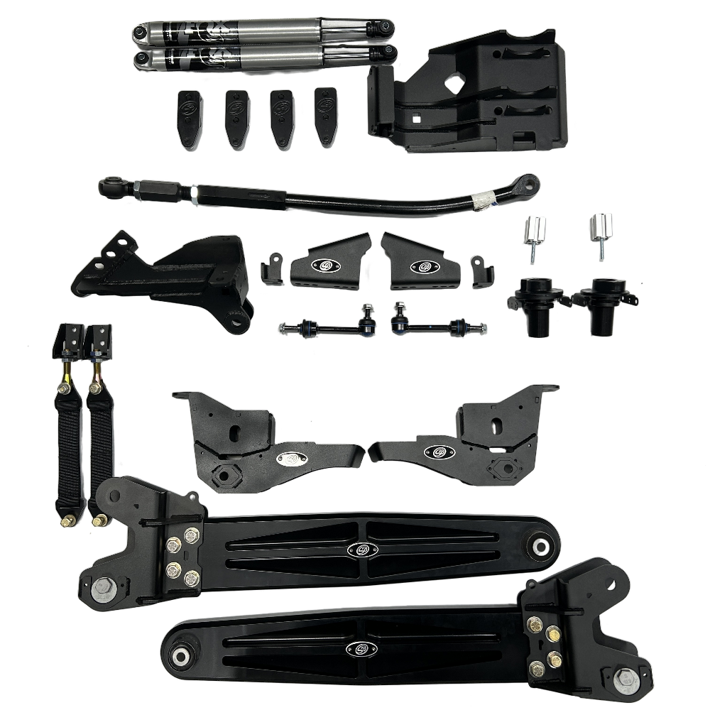 Our top of the line kit for those looking to raise the front of their truck 2.5″ while leaving the rear height alone. Our fully loaded kit includes everything we manufacture to improve the ride of your Super Duty including our Dual Steering Stabilizer System, Billet Radius Arms, Radius Arm Drops, Adjustable Track Rod, and Track Rod Bracket. Scroll down to find more about all that is included. Level your truck while greatly improving the ride quality and towing performance at the same time. Add our Torxz traction bars for the ultimate towing experience.