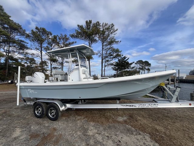 Call or text Manteo Marine, your Bay Rider dealer for the OBX, at 252-473-2197. Available 2026 BayRider 239 Bay with Yamaha F200XD2, Telesto Grey hull with underside hardtop color match, Garmin 1243XSV, Wet Sounds stereo, Road King trailer and much more.