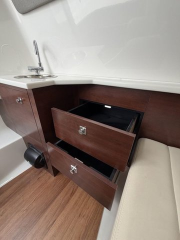 The 280 OSX is packed with premium features that make the boat feel larger than life. A double-wide bowrider seat, hardtop with skylight, and day cabin with an electric toilet are amenities that you won't want to live without after you try them.