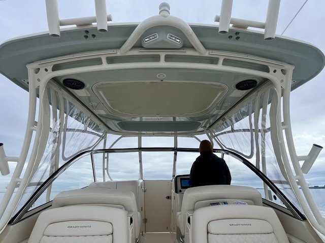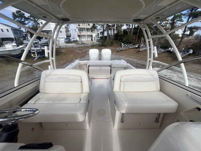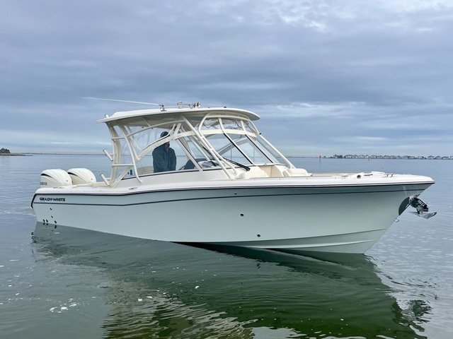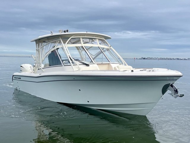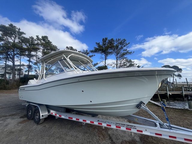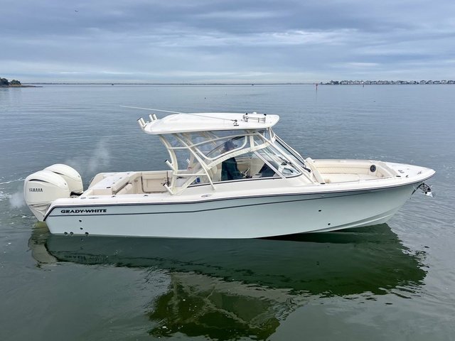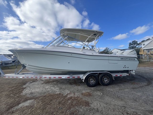 Manteo Marine, your Grady White dealer for the OBX. Call or Text 252-473-2197. Available 2026 Grady White 285 Freedom with Twin Yamaha F300XSB4 with Helmaster joystick and Yamaha Autopilot, Sage Gray hull color with underside hardtop color match, Sun platform insert with cushions, Underwater lights, Bow Cover, 3 piece enclosure, Aft curtain, Forward bow sunshade, Magic Tilt trailer and much more.