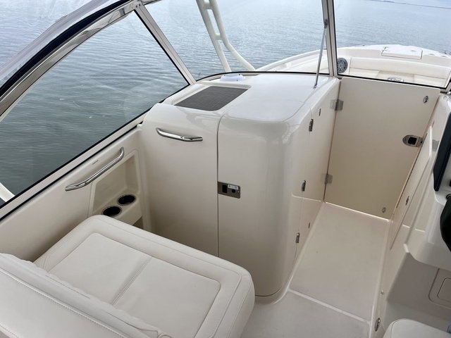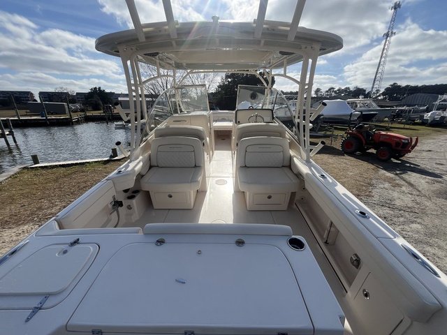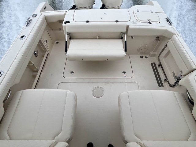 Grady-White’s dual console offshore boats are truly the most versatile, luxurious boats on the market, and the redesigned 28-foot Freedom 285 is no exception. With its wide beam, open cockpit, and plentiful features including plush seating and a port side cockpit door with boarding ladder, the 285 delivers on both comfort and innovation. Fully outfitted for fishing, water sports, or just cruising the waterfront, this sleek and sporty boat is a pleasure to drive and reliable in all sea conditions because it sits on Grady’s signature SeaV²® hull.