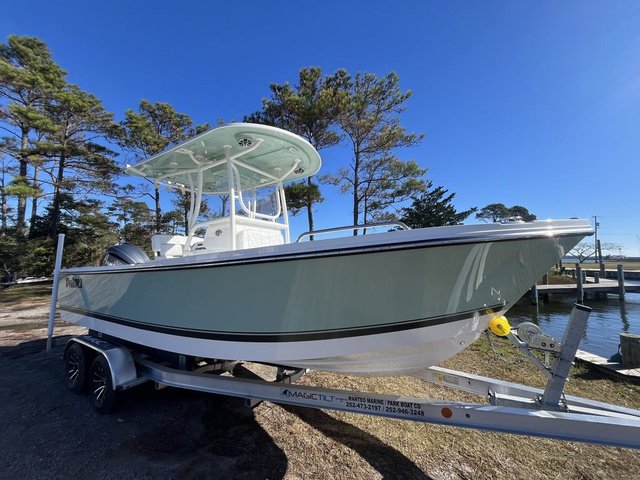 Call or text Manteo Marine (252)473-2197 your Parker dealer for the OBX. Available 2026 Parker 230 Coastal Elite with Yamaha F250XCB, Mash Mist hullside with Dark Gray bootstripe, Hardtop with underside Marsh Mist, Fwd V Seat, Magic Tilt trailer and much more.