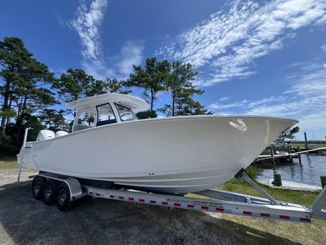 Call or text Manteo Marine (252)473-2197 your Sportsman dealer for the OBX. Available 2026 Sportsman 322 Open with twin Yamaha XF450NSA2, Helmaster joystick, Autopilot, Dual Garmin 1643XSV, Seakeeper 2 Gyro, Trolling motor plug and harness, and much more.