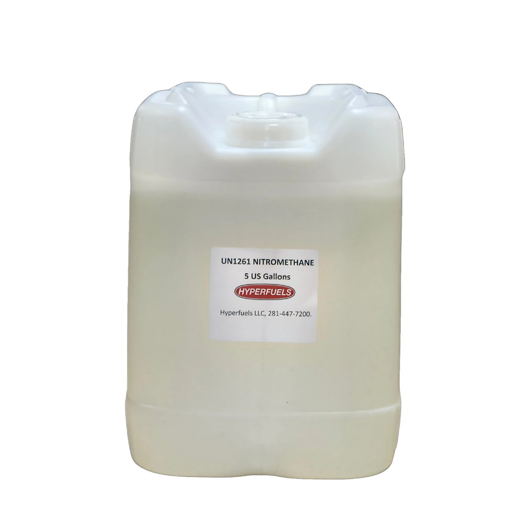 High-purity nitromethane (99.9%) in a convenient 5-gallon container—ideal for precision fuel blending, research, and specialty chemical use. Whether for motorsports or industrial applications, this nitromethane delivers reliable performance, clean combustion, and consistent quality in every batch.