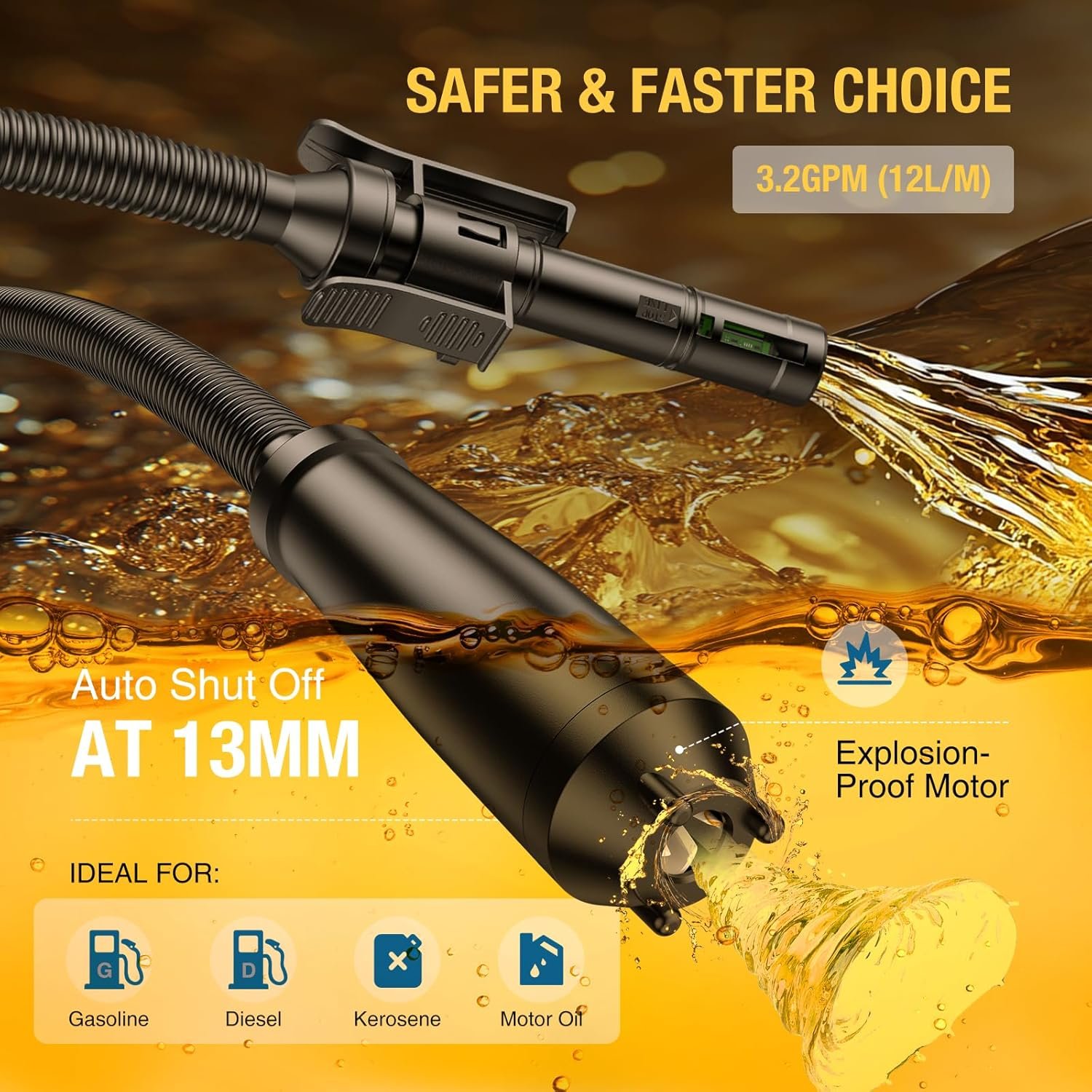 - 【High-Flow Power for Gas, Diesel & Kerosene】 Need one versatile pump for multiple fuels? Engineered for a strong 3.2 GPM (12 L/min) flow rate, this battery-powered transfer pump efficiently handles gasoline, diesel, kerosene, and oil. It’s the powerful, all-in-one solution for quick refueling at home, on the farm, or on the road