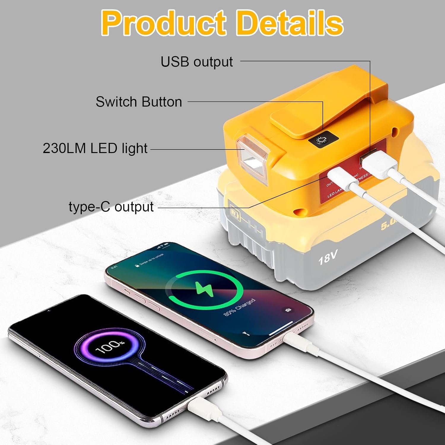 This Adapter transforms your tool battery into a multi-functional power solution that supports a variety of devices, making it indispensable for both work and leisure. Its versatility and portability allow it to meet the demands of professionals, outdoor enthusiasts, and emergency preparedness alike.