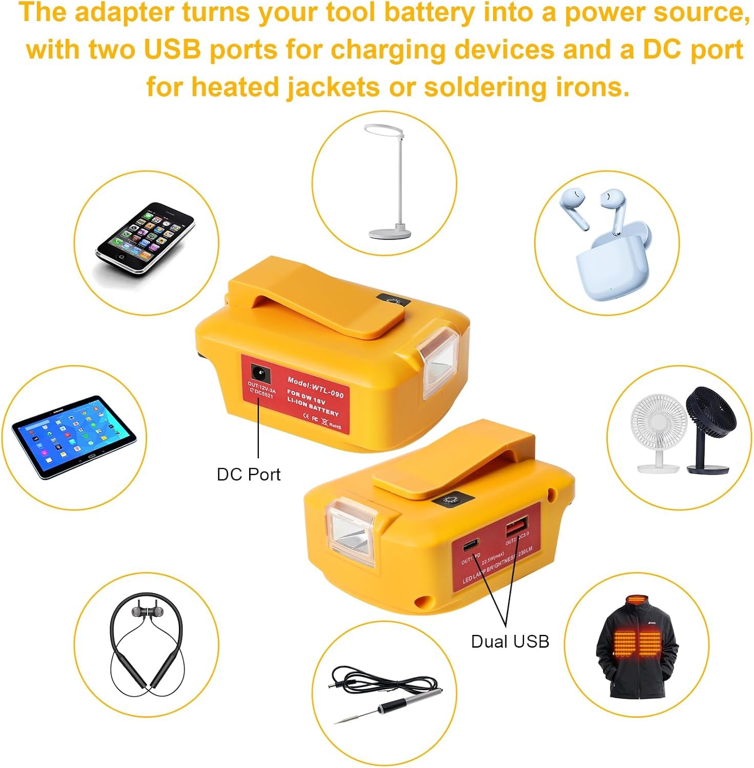 - Outdoor Adventures: Ideal for camping, hiking, and other outdoor activities, the adapter can power LED lights, heated jackets, and portable fans. Enjoy the convenience of a portable power source that keeps you comfortable and connected in remote locations.