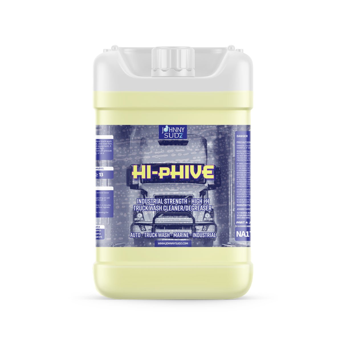 Hi-pHive by Johnny Sudz is a professional-grade, ultra-concentrated alkaline truck wash designed to eliminate diesel soot, heavy grime, oil, and road film from trucks, trailers, equipment, and fleet vehicles. It’s ideal for touchless systems, tunnels, and high-pressure washing.