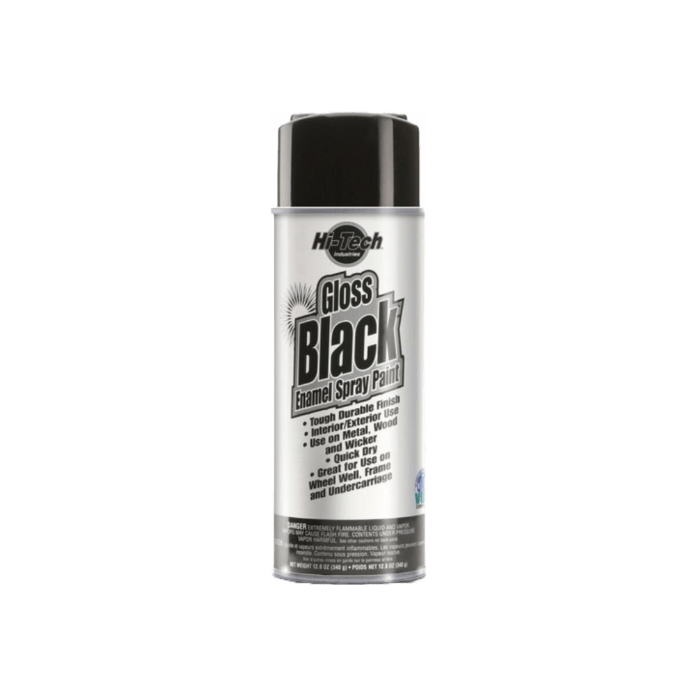 Hi-Tech Gloss Black Enamel Spray Paint is a premium paint that covers easily to provide a tough | durable finish. It can be used on most types of metal and wood. Specially formulated to dry quickly and smoothly. Heat resistant to 250 degrees F. Aerosol can net weight 12 oz. California / OTC VOC Compliant.
