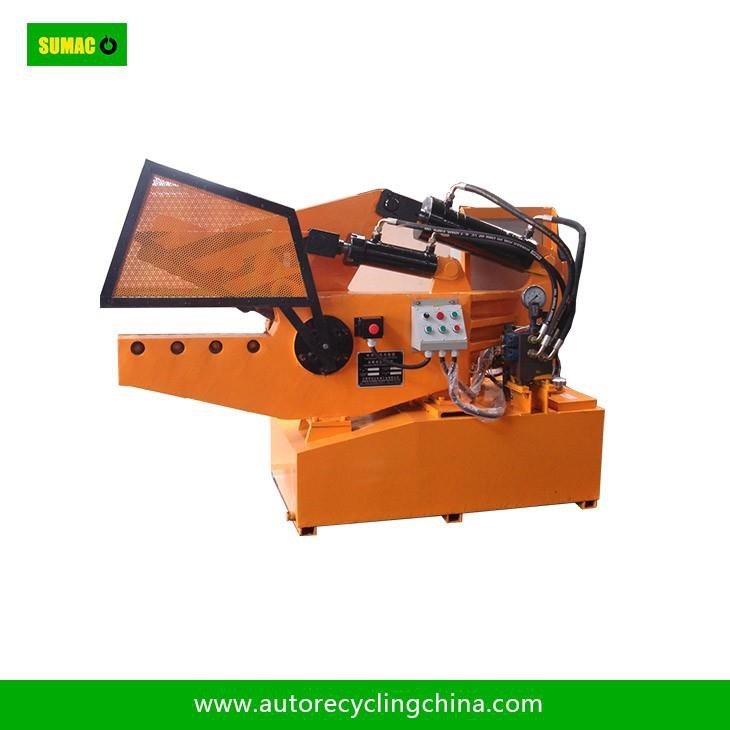 SUMAC Auto Recycling Equipment Co.,Ltd is one of the most professional manufacturers and suppliers of hydraulic recycling metal shear machine in China. Please feel free to buy high quality hydraulic recycling metal shear machine at competitive price from our factory. 1. IntroductionQ08 Hydraulic scrap metal shear is new developed model which used advanced technology on worldwide level.This shear is suitable for cold cutting (instead of flame cutting) different type waste metals to short pieces which qualified to the furnace,it could improve the work efficiency as well as save the labor and gas cutting cost.In auto recycling system,this shear is widely used to cut the catalytic converter,kinds of waste scraps,etc.2. Main Technical ParameterModelQ08-160AMax. Shearing force(KN)1600Max. press force(KN)200Max. knife opening360Knife length(mm)600Shearing speed(times/min)11~20Power(Kw)15Material size(mm)30×320/φ65Operationmanual or automaticDimension(mm)2600x1000x1800mmTotal Weight of machine3800Kg3. Packing4. Raw material5. Image of company