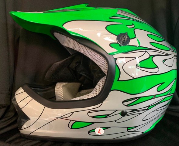 Kids Moto Helmet GREEN/SILVER LRG