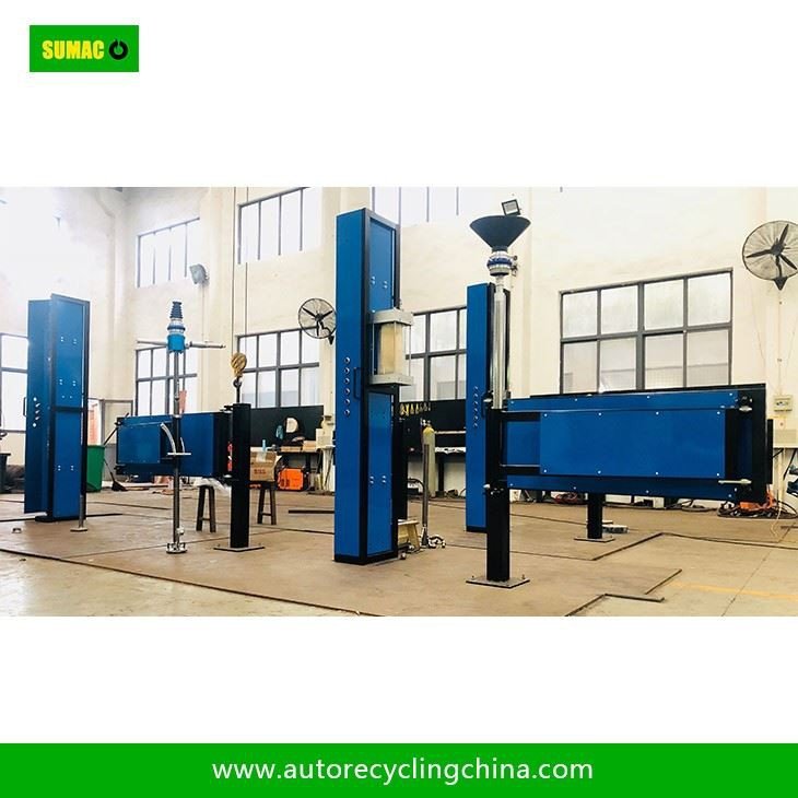 SUMAC Auto Recycling Equipment Co.,Ltd is one of the most professional manufacturers and suppliers of semi-automatic car drain system in China. Please feel free to buy high quality semi-automatic car drain system at competitive price from our factory. 1.Introduction◆ Semi-automatic car drain system is convenient installation and simple operation. In order to ensure the safety of the operation process, the equipments are all pneumatic driven, without any spark. ◆ The arm is flexible, with a large work space and suitable for all types of vehicles.◆ The powerful air pump and reliable drilling and discharge tools ensure the fast and safe discharge of all liquids in ELV such as gasoline and diesel, screen wash fluid and brake fluid, waste oil, coolant etc.◆ Optional: The specially designed filter could filter and clean the fuel, greatly improving the utilization of various valuable fuels.2.Technical Data★ Air Supply: 8.5 bar ~ 1.21 l/min★ Consumption: 2.85 l/vehicle★ Drainage time: About 10 min/vehicle★ Fluid Displacement: 14 l/m★ Engine Oil: 3 l/m★ Coolant Fluid: 3 l/m★ Screen wash fluid: 5 l/m, etc.★ Installation Size: 6000 x 3000 x 2300 mm3.AdvantagesPneumatic controlMechanical control of the lifting of drilling deviceWhole set supply , no need to installLarge range of arm moving